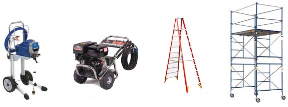 Start with a portable pressure washer to quickly prepare the work site. Get the right sized ladders. And wouldn't it be nice to have scaffolding? For the big project ... airless paint sprayers. You name it, we rent it.